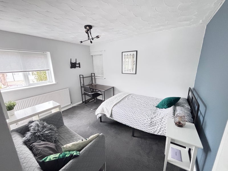 Double furnished room with own bathroom, and a small kitchenette area available in a 4 bedroom modern, quiet property.. Well maintained, clean, professional houseshare with Superfast Wifi. Low Deposit of £395. On drive parking.
