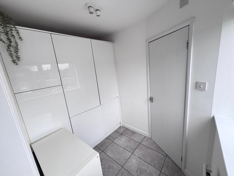 Communal living room, modern kitchen with all white goods including washer and dryer. Patio area and small garden, perfect for summer bbq's!