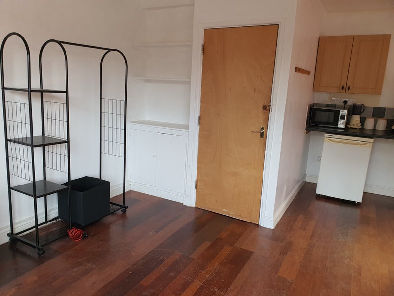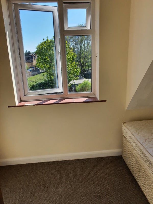 Cosy single room with lovely view. The flat is 2 mins walk to Farncombe station. Bathroom with bath and shower over. Large sitting room and separate kitchen. There is a balcony/ terrace with view over the railway. Bills included.