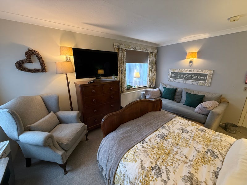 Lovely LARGE light Airy, warm fully furnished room, with luxury slumberland bed for ultimate comfort, the windows are fitted with black out blinds that promises better sleep. Newly carpeted and redecorated that creates a calm living space, it has lots of storage.