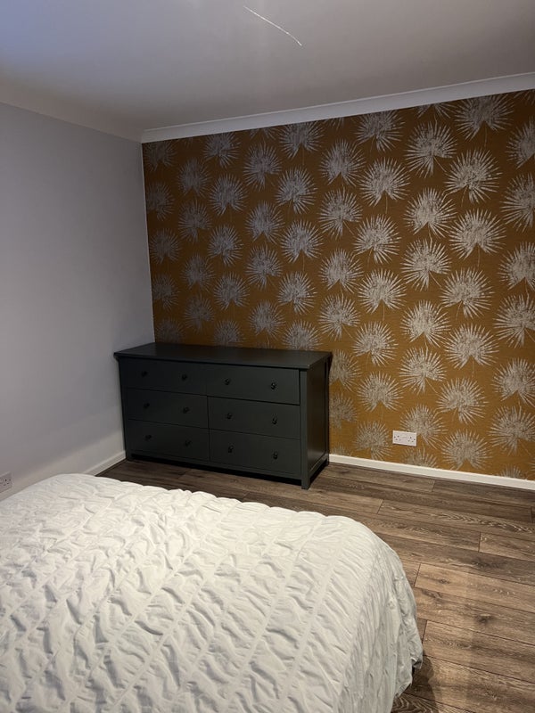 Large double room available from 10 January On street parking. WiFi and bills included. Sheared bathrooms kitchen and living room.