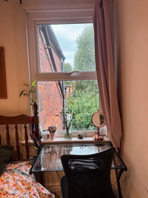 Double room available in a current uni house. Shared kitchen and bathroom and living space. Live on a quiet road 10 minute walk from the town centre. University student preferred.