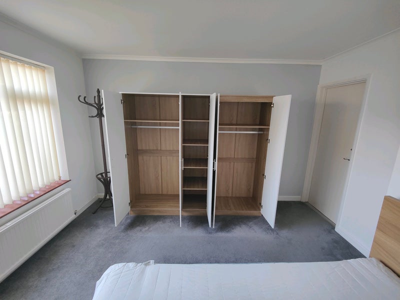 ✓ Furnished with two wardrobes, under bed storage drawers, bedside cabinet and double bed.