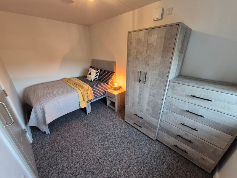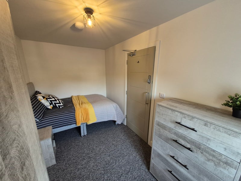ROOMS ARE FULLY FURNISHED WITH DOUBLE BED, BEDSIDE, WARDROBE, CHEST OF DRAWERS. DESK IF REQUIRED.