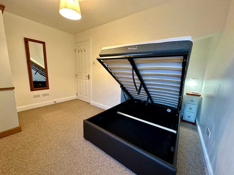 The available double bedroom is located on the first floor which has a view over the rear gardens. Furnished with hand-painted furniture and an ottoman bed the room provides ample storage.