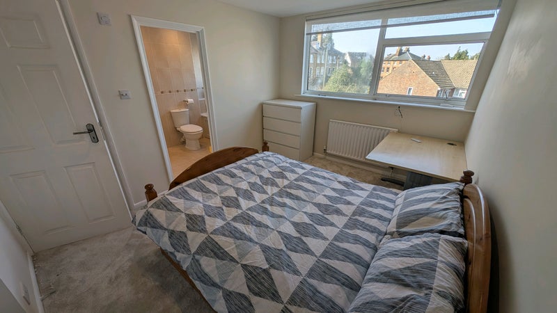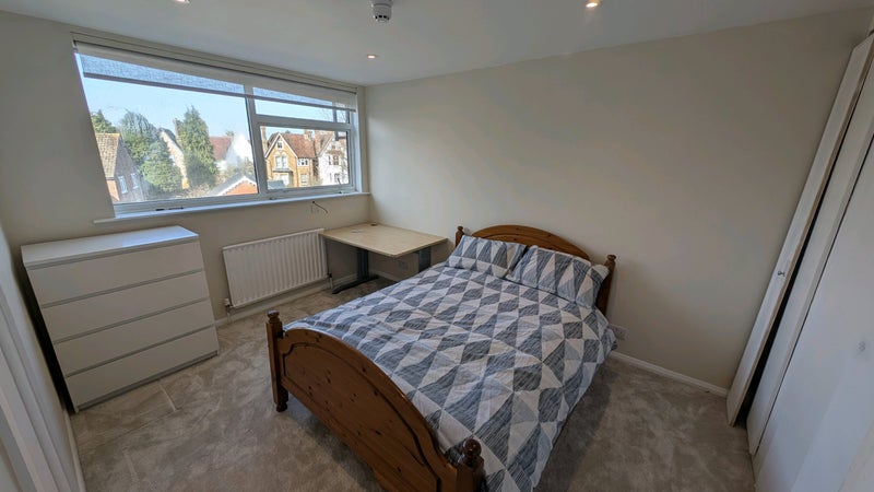 This is a large double room with plenty of storage built in, has a bath as well as desk already present for your every need. Is two floors up so has a relatively good view of Guildford if that's what your into. Has a large kitchen, living room, garden and dining room all for everyone's use.