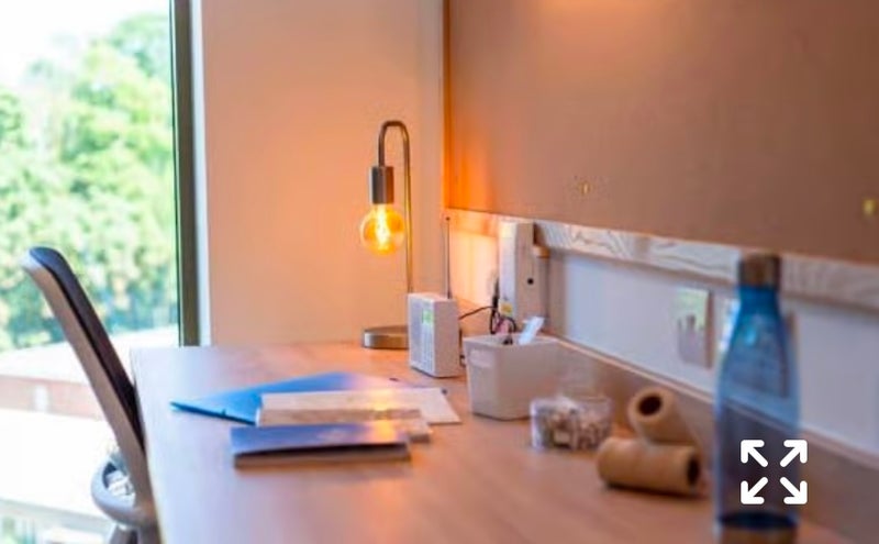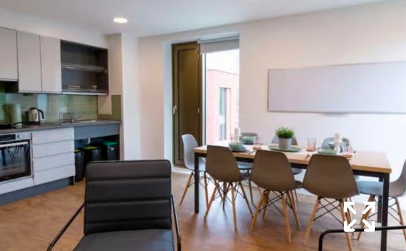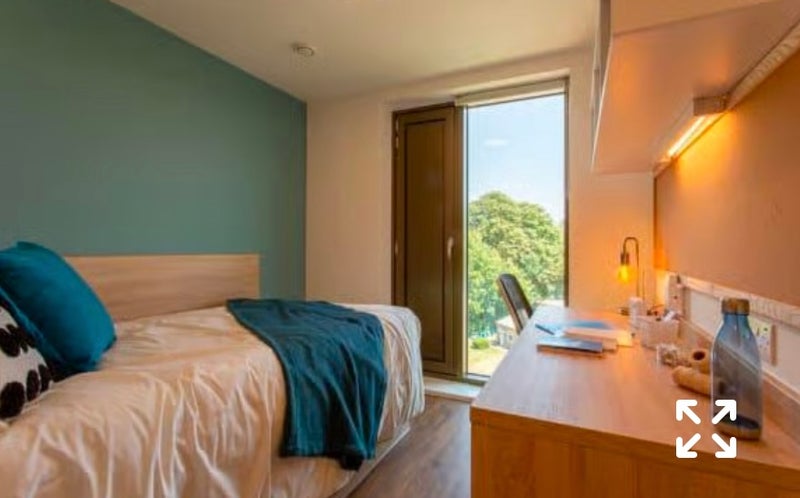 The Room is a standard en-suite, with a 3/4 size bed with under-bed storage, a study desk and chair, bookshelf storage, a full length mirror and wardrobe. The en-suite includes a shower and WC. There is a shared kitchen and lounge area 2-ring induction hob, electric oven, fridge with freezer and a dining area. All utilities bills are included, gym, cinema lounge, courtyard, communal lounge, laundry room, study space, high speed internet, games hub, private dining room, CCTV, bike storage, library and vending machine.