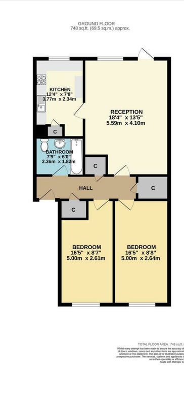 The property comprises entrance hall with built in storage, family bathroom, two double bedrooms and a large lounge diner with separate kitchen.