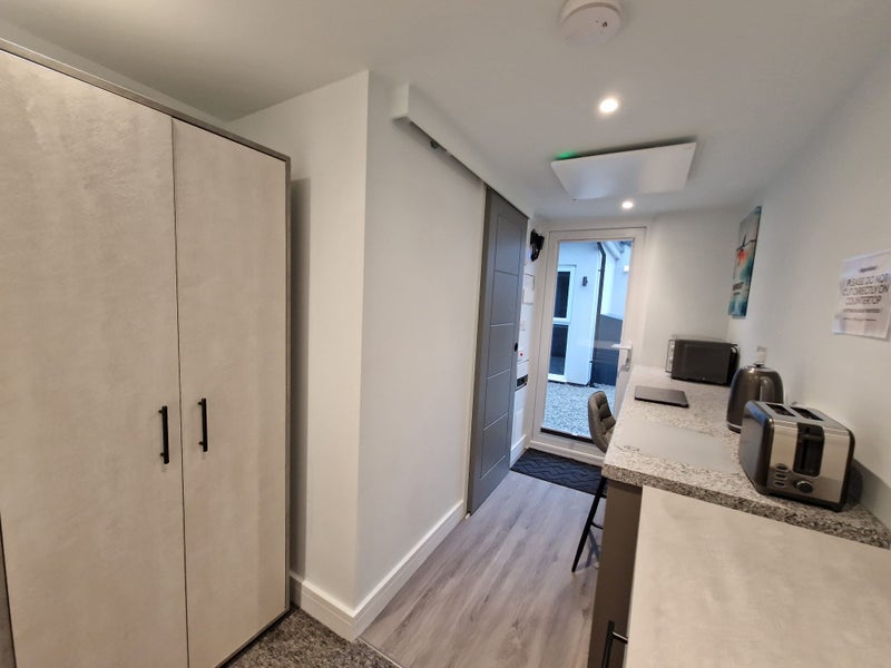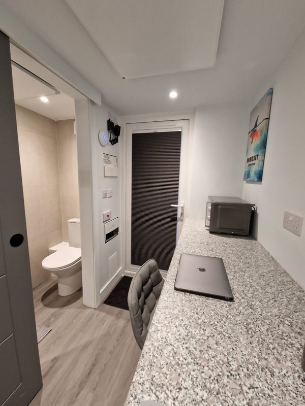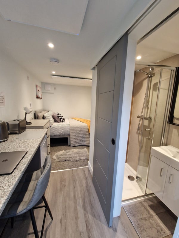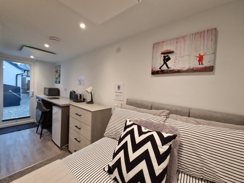 ROOM IS FULLY FURNISHED WITH DOUBLE BED, WARDROBE, CHEST OF DRAWERS, KITCHEN / STUDY AREA INCLUDES MICROWAVE, KETTLE, FRIDGE, TOASTER.
