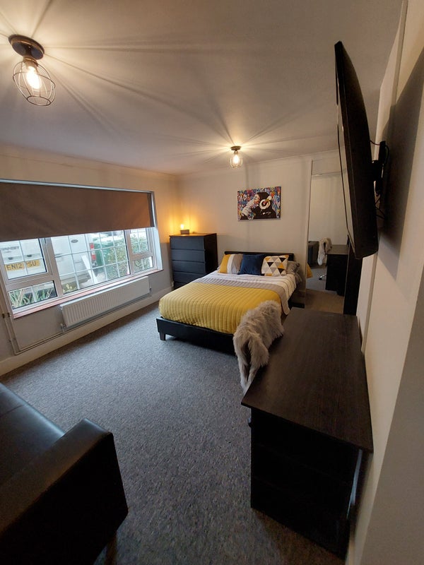 ROOM IS FULLY FURNISHED WITH DOUBLE BED, SOAF, DESK AND CHAIR, BEDSIDE, WARDROBE, CHEST OF DRAWERS, WARDROBE, SOFA.