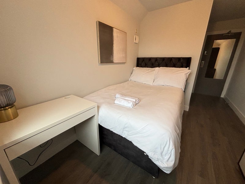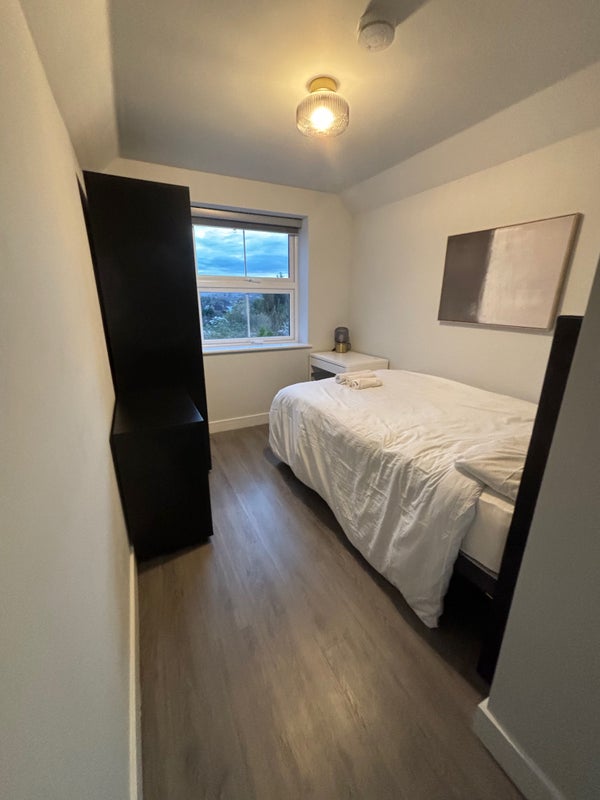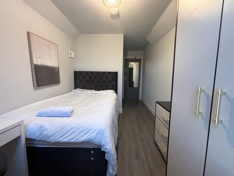 - Fully furnished with wardrobe, bedside table, chest of drawers, desk and bed with comfy mattress and black out blinds.