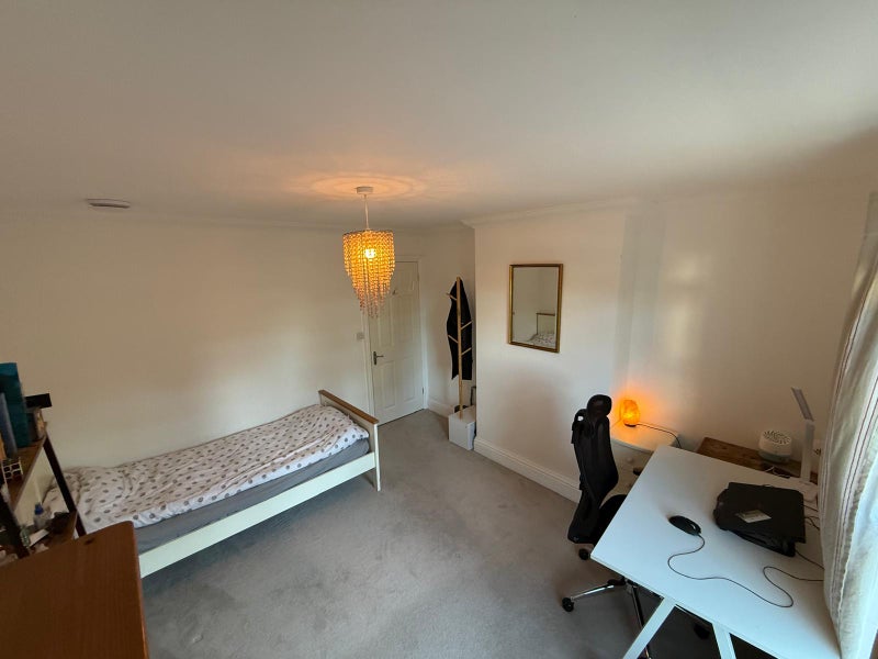 Large single room that can fit a double bed, fully furnished, in a shared house right on the River Wey. A comfortable 3-bed house with an open-plan kitchen and living area with TV, which is great for cooking and hanging out. You'll share a bathroom with just one other flatmate. The kitchen has a dishwasher and there's a washing machine. Fast WiFi throughout. There's a private garden with table and chairs, an outdoor fireplace for summer evenings, and direct access to the River Wey including a kayak you're welcome to use.