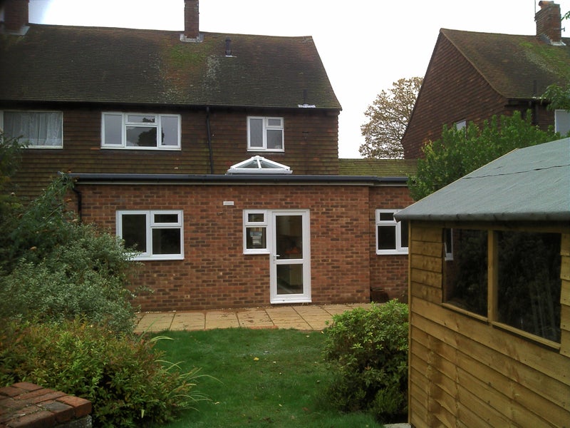 Sunny garden & new patio. Garden shed for bike storage etc. Loads of parking