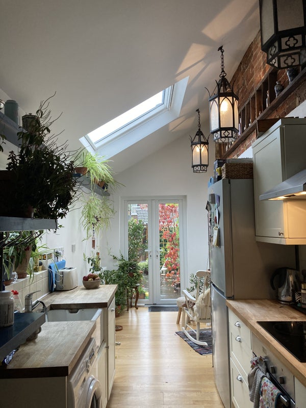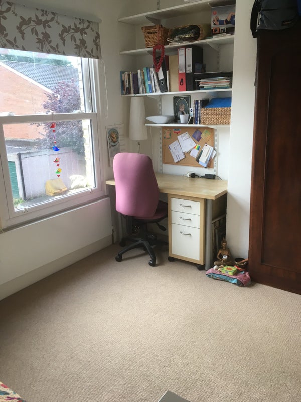 Lovely bright double bedroom in a 2 bed cottage in the centre of Guildford. House is stylish, modern and cozy. Sharing of kitchen, bathroom, dining room. Small garden with seating. Bills included. The room has a single bed from IKEA with storage and extends to double. There is a wardrobe, shelves and a desk. I have two lovely cats. I’m Swedish and work as university lecturer. In my spare time I like to see friends, go to gym, do gardening and cooking. I want lodgers to feel at home and relaxed when you stay here and to enjoy the space.