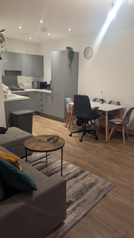 Looking for a lovely person to live with in a relatively new development that's 5min walk from the train and shops. The flat is shared apart from the rooms. Any kind, clean, respectful and lovely person is welcome. The room is readily available please let me know if you're interested.
