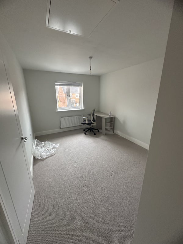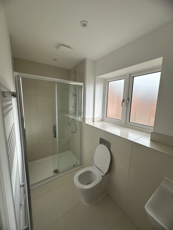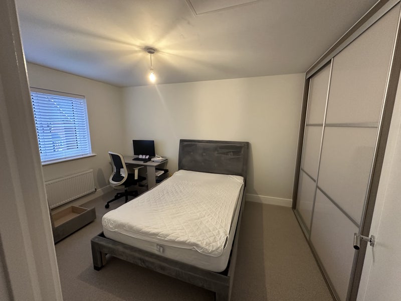 A modern, fully furnished double bedroom with private en-suite in a clean and comfortable family home.
