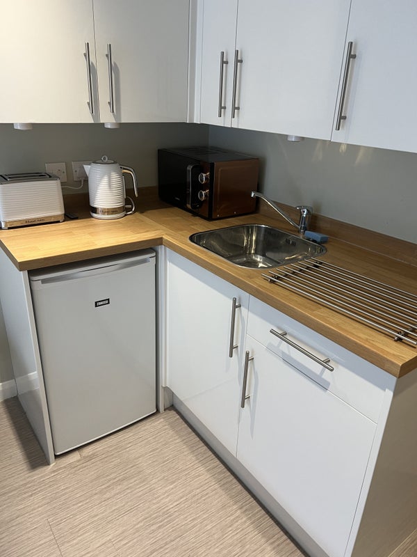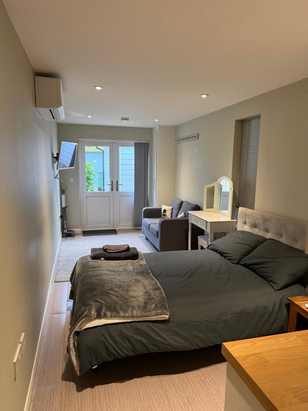 The Annexe comprises :- Studio lounge/kitchen/bedroom, small double bed, separate shower room, walk-in wardrobe cupboard, Air conditioning and heating unit. The property has a kitchen area with under worktop fridge. Also a microwave ,, kettle, toaster. ( I will also supply double duvet plus pillows.) if needed.