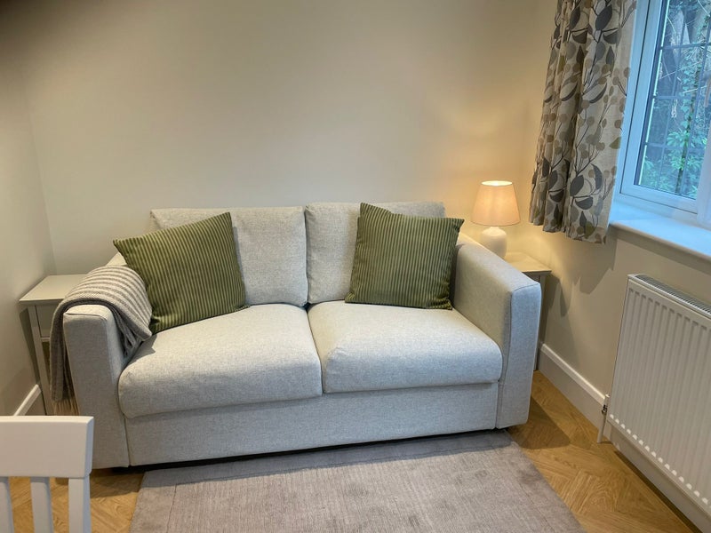 This is a newly built, fully furnished one bedroom apartment near Woking in Surrey which is available for £100 per week including all bills and council tax, in exchange for helping out around the house for around 10 hours per week, sometimes up to 15 hours. The apartment is part of a large detached house with a senior female homeowner.