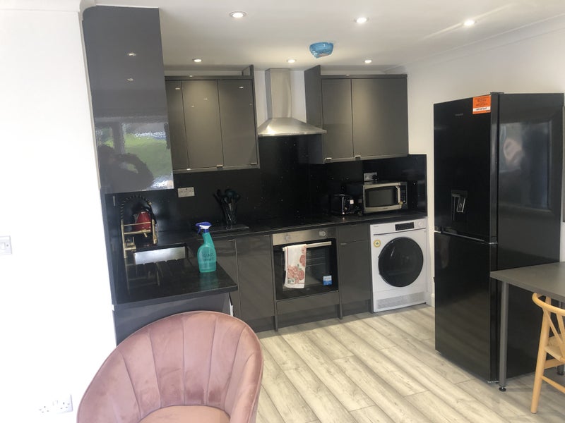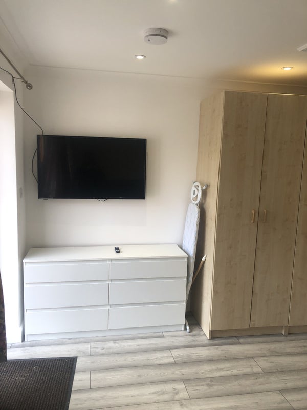 Newly furbished en-suite and equipped kitchen. Private entrance and parking. Cupboards and double bed.