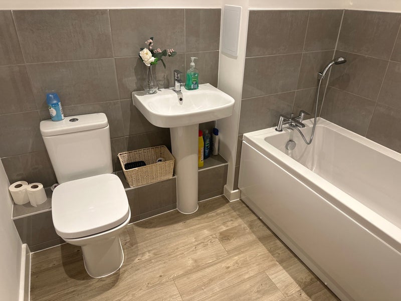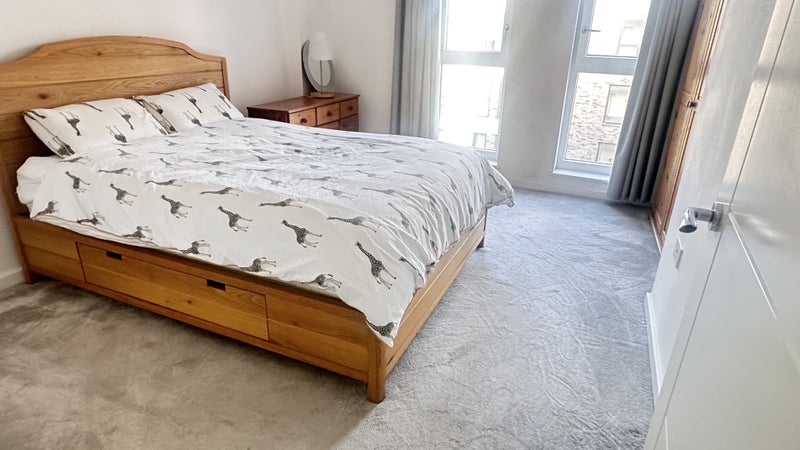 Own bathroom for use as shown on the photos. The room has a new comfy Kingsize bed, chest of drawers, wardrobe. There is also a washing machine, Samsung heat pump dryer, microwave and 77’ Sony Bravia OLED TV