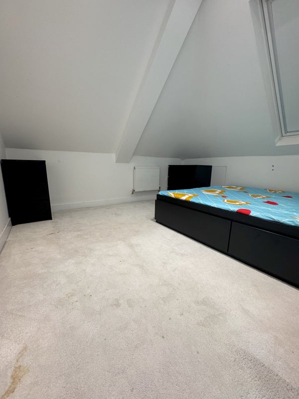 This is a bright and comfortable double room, offered fully furnished with a bed, wardrobe, and a desk. With a large window overlooking the garden, it’s a peaceful space to relax after a long day.