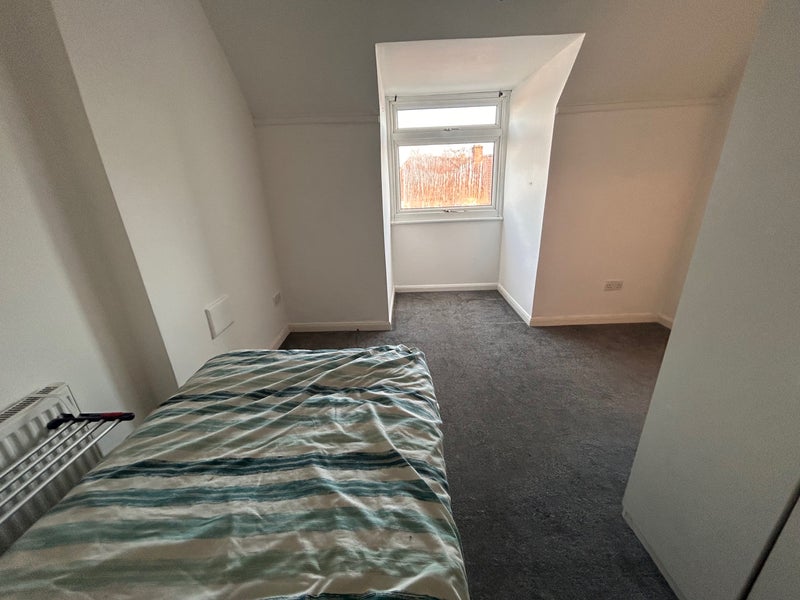 Spare double bedroom for rent. Includes single bed and wardrobe, shared kitchen and living room, as well as a detatched garden. Street parking is free and always has spaces available.