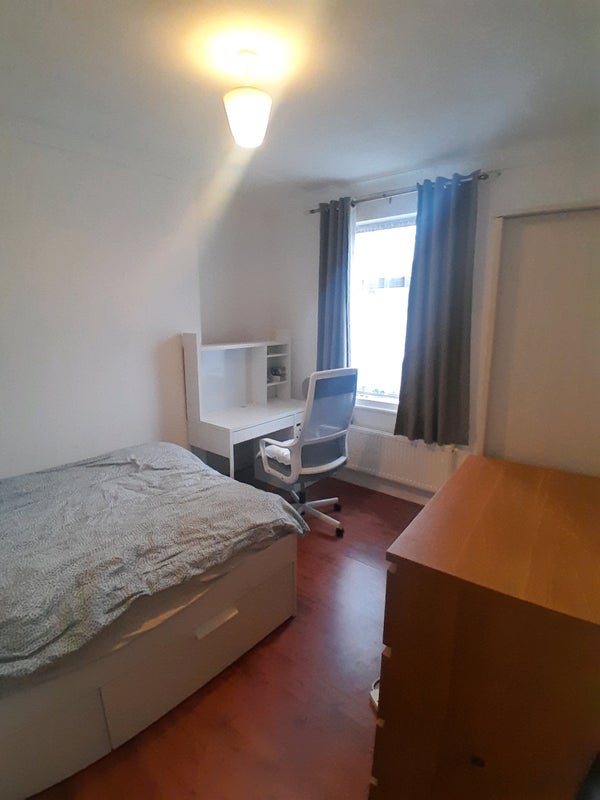 Fully furnished with bed, storage, wardrobe, desk, drawers and bedside table. Newly renovated bathroom and kitchen with shared living room and long garden. There are two fridge freezers so plenty of space. There is also an extra toilet under the stairs and 1 full bathroom.