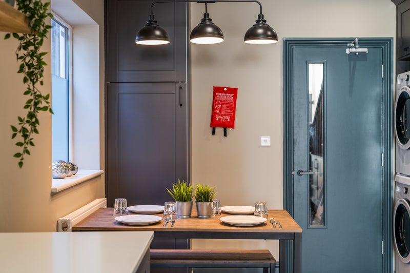 The Social Hub: Access to a designer kitchen, cosy TV snug, and a shared garden with bike storage. 🚲