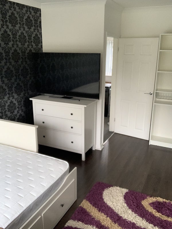 Fully furnished : double bed with a brand new mattress, sofa, wardrobe storage, under bed chest of drawers, and set of 3 drawers, tv available on request.