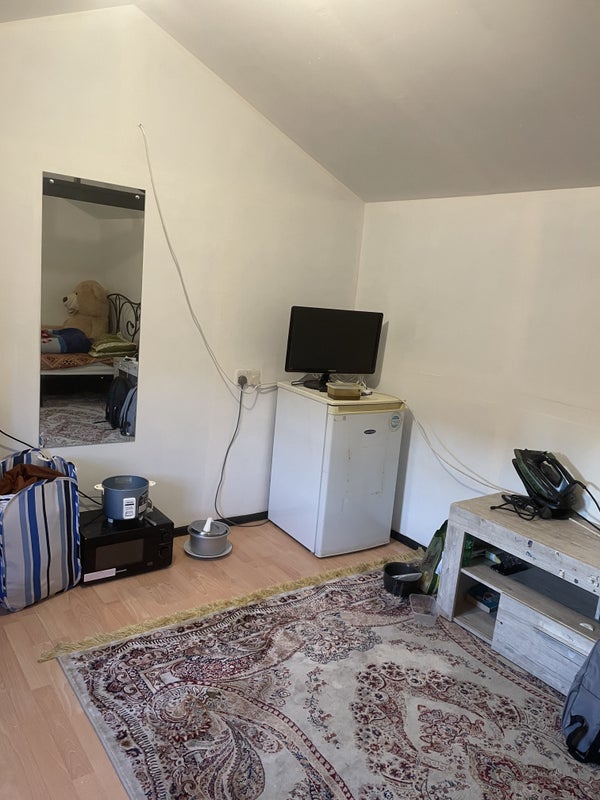 This is a lovely double- outbuilding cottage next to woking college , woking park and walking distance to woking town centre. The room is very huge with plenty of space , quiet , peaceful with lots of sunlight .It is independent , furnished and has its own freeze , freezer and microwave. The kitchen and bathroom is shared. Its lovely and with homely vibes and atmosphere.