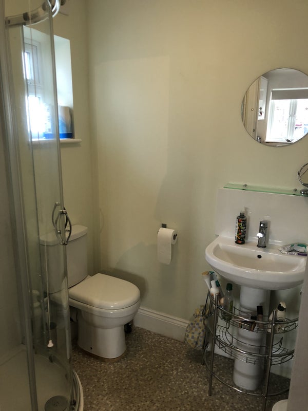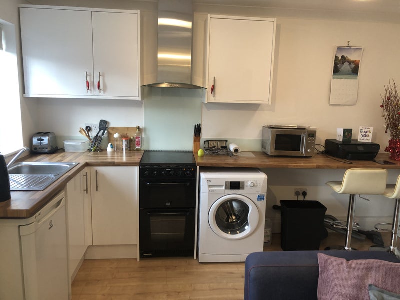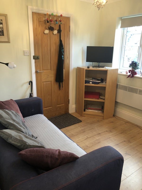 You are viewing a self contained studio flat , which has its own access but is part of our house. You only share main door to the house. It has a double bed, sofa, all kitchen essentials, washing machine, cooker and its own bathroom. Parking on the private driveway also available. Lovely street, quiet and safe, with easy walking access to Woking town - about 20mins. Local shops 5 mins walking distance as well as gym/leisure centre.