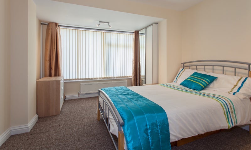 This bright, large, recently decorated and fully furnished bedroom shares a shower room with one other housemate.