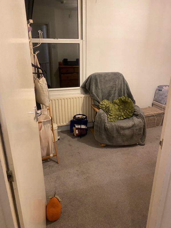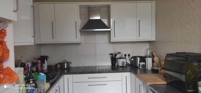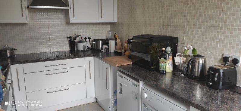 1 double sized room in Redhill, double walk in wardrobe, chest of drawers, etc. New carpet. This is a very well equipped flat in Redhill. Walking distance to station buses etc. Comfortable lounge, completely equipped modern kitchen with dishwasher, washer/dryer. electric oven, and Microwave. Fire alarmed. Modern bathroom with shower and bath. Shared garden. Share with 3 friendly young professionals. street parking . Refs. required. Sorry no children, no pets. This flat is for a caring clean, friendly, non smoking professional. Walking distance to town and station, good rail and bus links.