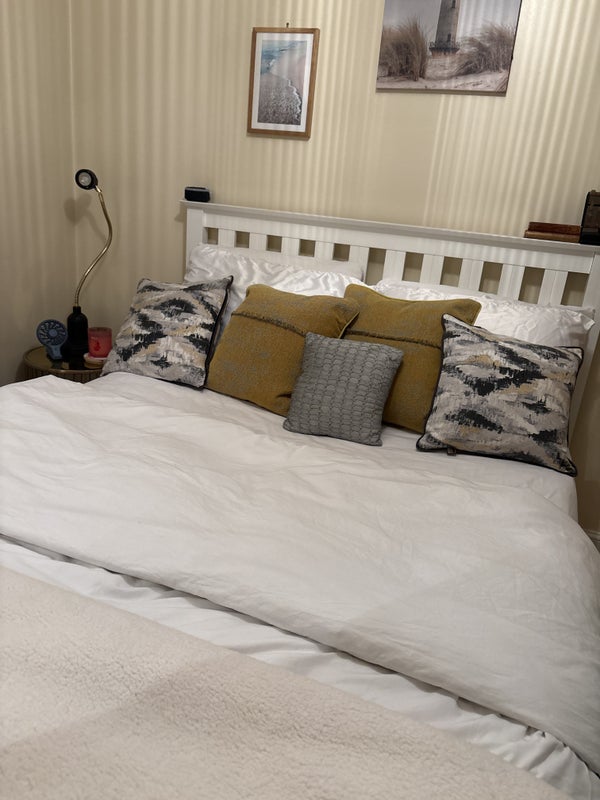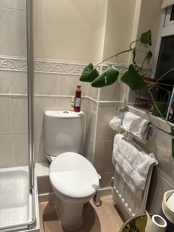 Double en-suite room with own toilet and shower. Desk space and office chair if required. Fitted wardrobe and drawers. Well decorated. Use of shared living room and kitchen including all utensils. Small garden/partio. Parking available. Use of part of the garage if needed to store personal items. £850 Inclusive of bills and internet - sky. Sharing whole house with one female - professional.
