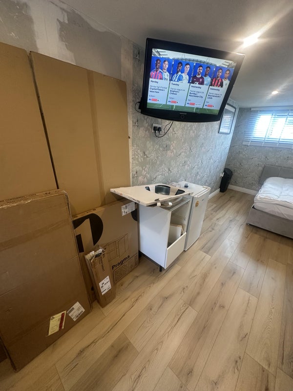 A well-presented, newly constructed self-contained studio offering comfortable and private living, ideal for a single professional occupant. The property includes all bills, Sky TV, Virgin Gig1 Fibre broadband, a handy kitchenette, with washer/dryer and a separate toilet and shower, and attractive multi-colour LED lighting for a modern finish. There is also ample storage throughout and the added benefit of your own private entrance for complete independence. Kitchenette and bathroom to be installed week commencing 20/04. This is newly constructed so you'll be the first to enjoy the space