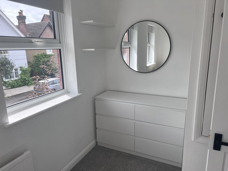 Fully furnished double bedroom with a 4ft bed, built in wardrobe and chest of drawers, located 5 minutes walk from Shalford train station. All furniture in the room is relatively new.
