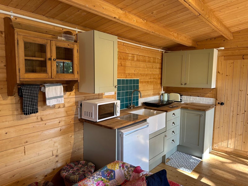 There is a spacious kitchen/lounge area. Kitchen is equipped with double hob, microwave, toaster, kettle and a selection of crockery/cutlery, pots and pans which leads into a separate double bedroom overlooking the river. There is an en-suite bathroom with shower, toilet and sink.