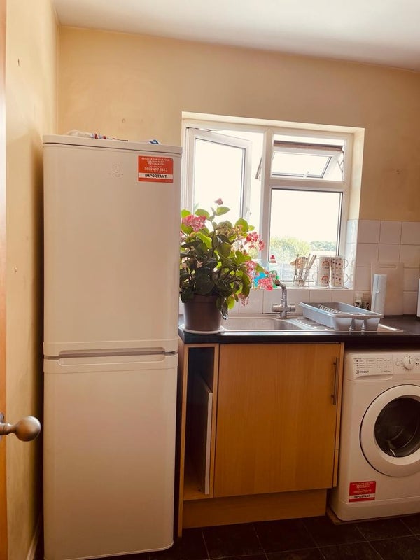 A shared kitchen and bathroom and a double room are available for rent in Shepperton, which is one minute from the neighborhood restaurant and grocery store. Heathrow Airport is 15 minutes away by car.