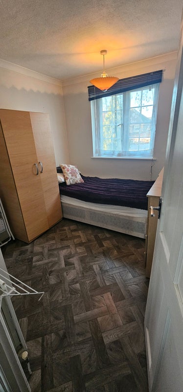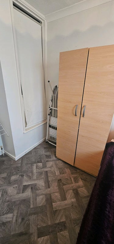 The room available is large box room, which has a single bed, cupboards, chest of draw and shelf room.