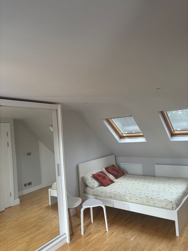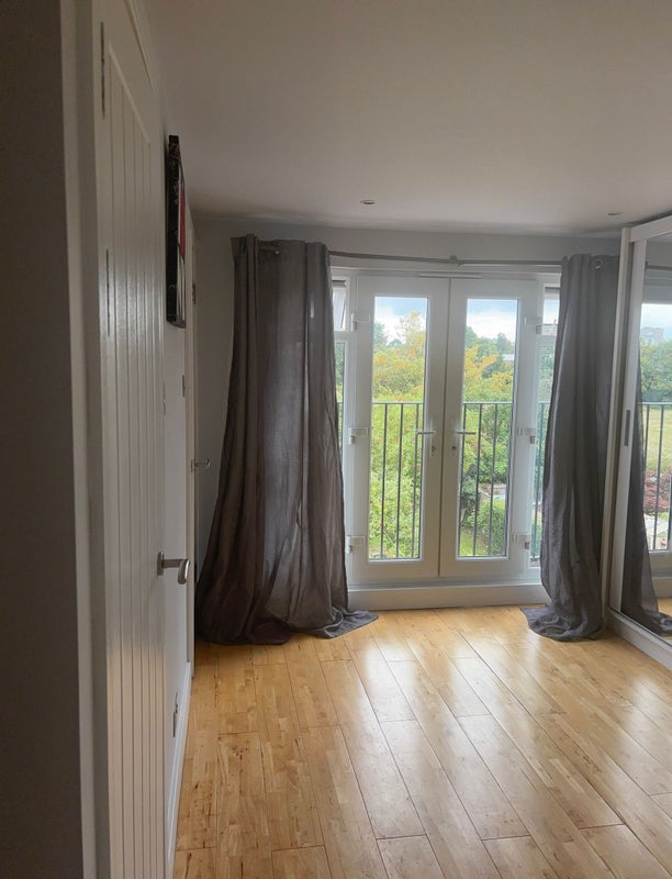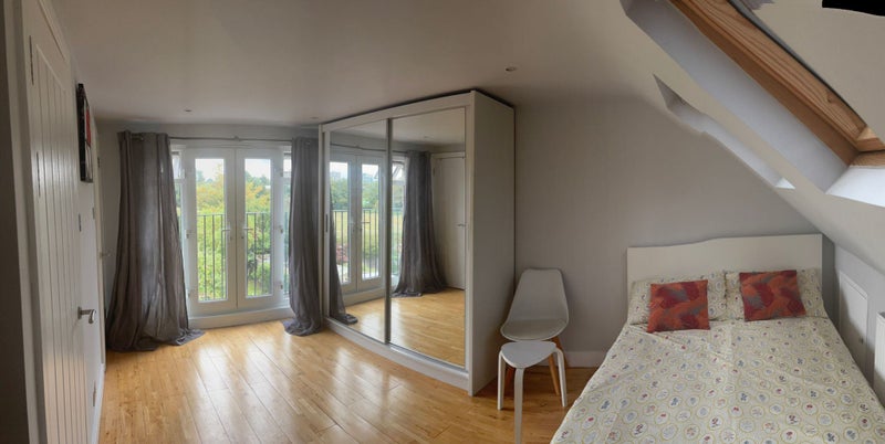 Furnished bedroom with own bathroom and a Juliet balcony overlooking the beautiful fields and greenery. Large wardrobe and extra storage.