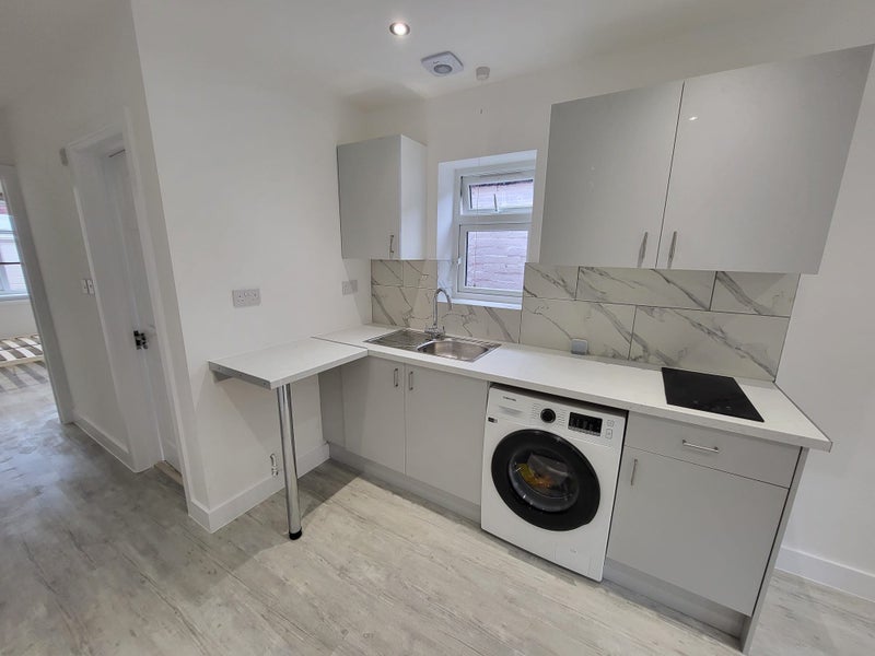 - Fridge, washing machine, microwave, electric hob, double bed, and wardrobe included