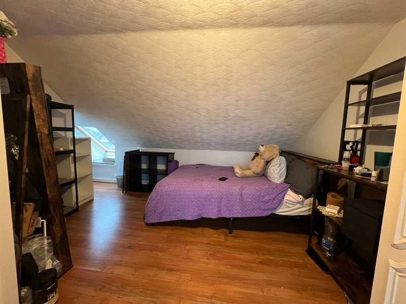 The room occupies the entire top floor, offering excellent privacy and plenty of space and natural light from large windows. The tenant will also have access to a modern private bathroom with shower, toilet and sink on the sam floor.