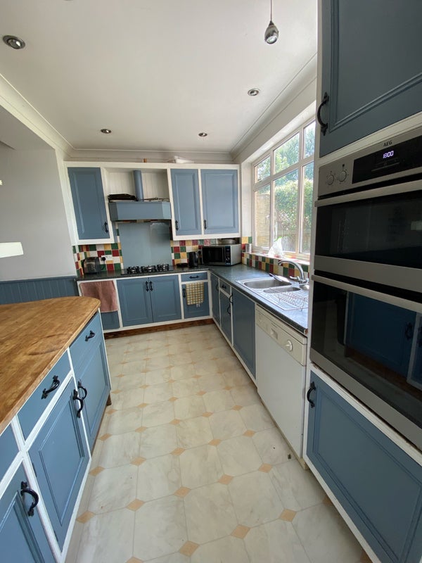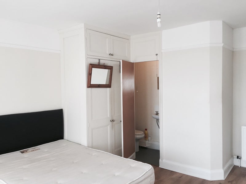 Light & spacious large double room with en-suite loo, sink & shower in well maintained detached shared house on borders of Wallington & Croydon. Unfurnished, but with fitted wardrobes & TV aerial. Ample room for a sofa & desk.