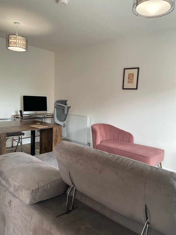 🛌 Enjoy a bedroom with its own private but separate large full size bathroom. The room features large, mirrored wardrobe, small double bed, and space for a cozy desk and storage making it customizable for your comfort.