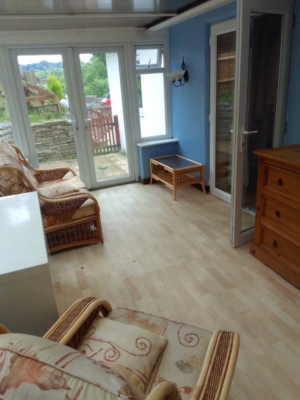 Small double room with adjoining large conservatory to patio doors leading to its own gated patio area, and space in double garage.