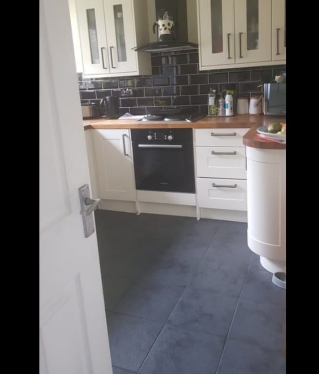 The kitchen is fully fitted and you would have full use of this with plenty of cupboard space for your use.