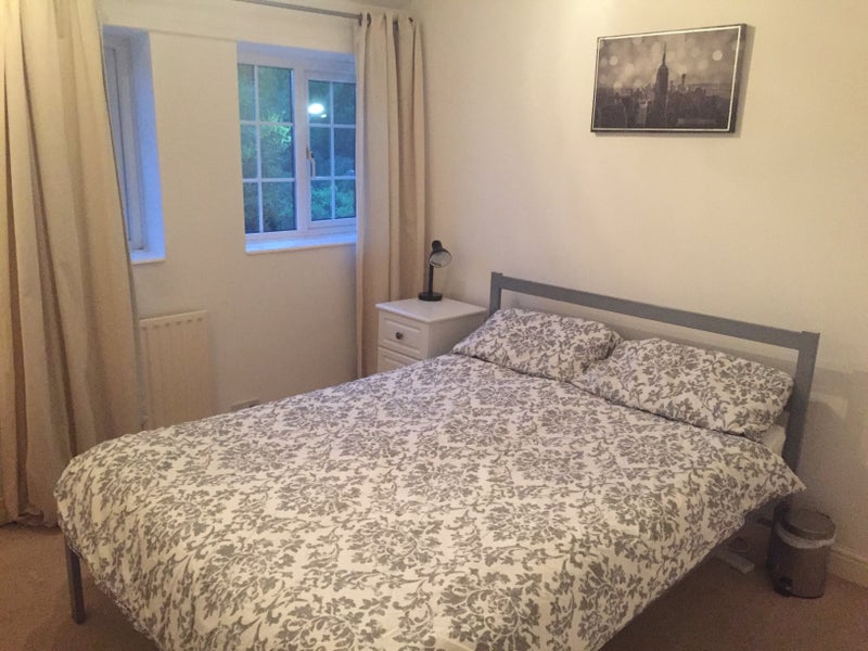 Available from 27th May. Double room with lots of storage (wardrobe, chest of drawers, shoe cupboard and bedside table. New carpet and mattress), in a house share with live in landlord in Sheerwater, Woking.
