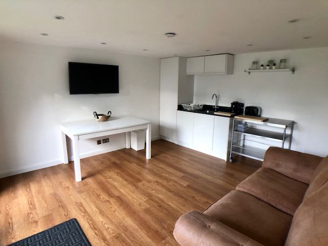 Comfortable, self contained annexe, for sole occupancy. Comprising a large open plan living/dining and kitchen. One double bedroom with double bed and compact bathroom with shower, basin and WC.