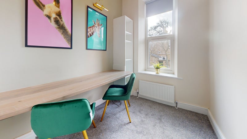 The property briefly comprises of; entrance hallway to two studios with kitchenette and en-suite bathrooms. The communal kitchen is on the ground floor as well as a breakfast bar underneath the stairs and a private yard to the rear. Stairs to the first floor lead to a utility room which includes a washing machine and dryer and there are two more studios with private kitchenettes and en-suites, as well as a communal office space. More stairs lead to the second floor where there are two double en-suite rooms. All rooms and studios come fully furnished with double bed, mattress, wardrobe, chest of drawers, desk with chair and bedside table.
