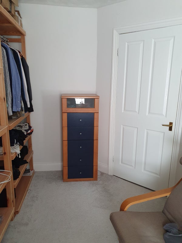 There are 2 toilets, 1 bathroom, a kitchen, a living room and a front and back garden. Lockable bedroom doors